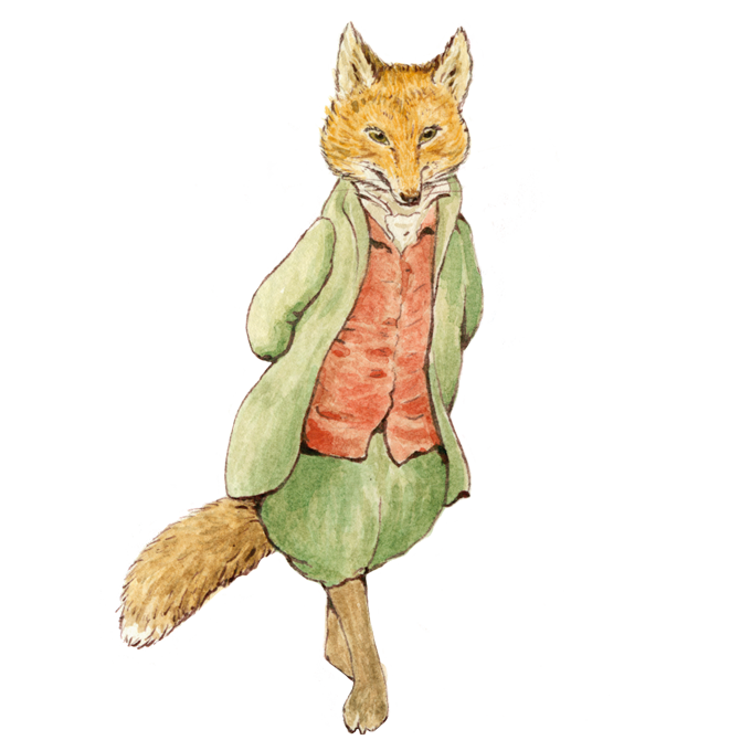 キツネどんはあひるやうさぎの一家にとっての敵ですが、『きつねどんのおはなし』では、大人になったピーターラビットとベンジャミンバニーが力を合わせて、アナグマ・トミーに連れ去られてしまったベンジャミンの子どもたちを救い出す時には、偶然にも救世主となります。