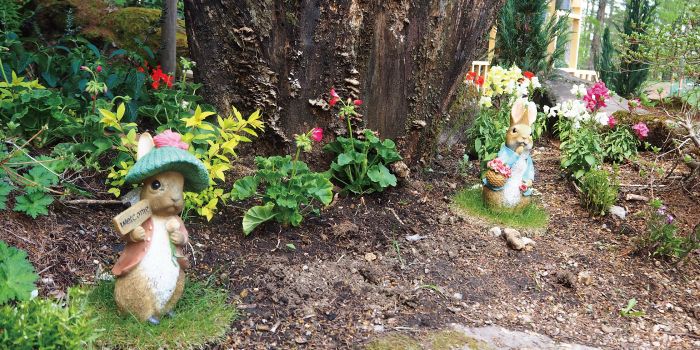 ピーターラビットの家をイメージした切り株を覗いてみると…?